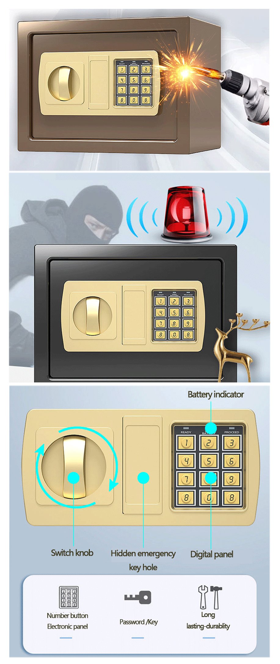 Our safe box are engineered with the latest security features, including advanced locking mechanisms, Premium Quality materials, and tamper-resistant designs. Whether you’re protecting important documents, precious jewelry, or irreplaceable keepsakes, our safe boxes provide unparalleled peace of mind, ensuring your belongings remain secure against theft, fire, and other threats.