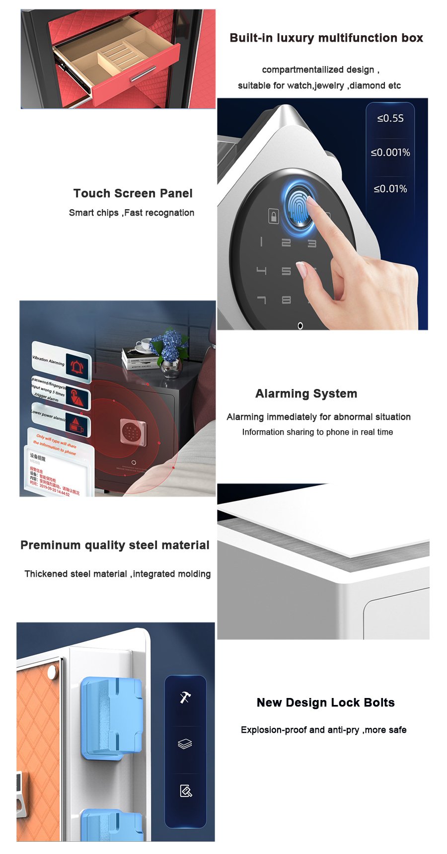 Our safe box are engineered with the latest security features, including advanced locking mechanisms, Premium Quality materials, and tamper-resistant designs. Whether you’re protecting important documents, precious jewelry, or irreplaceable keepsakes, our safe boxes provide unparalleled peace of mind, ensuring your belongings remain secure against theft, fire, and other threats.