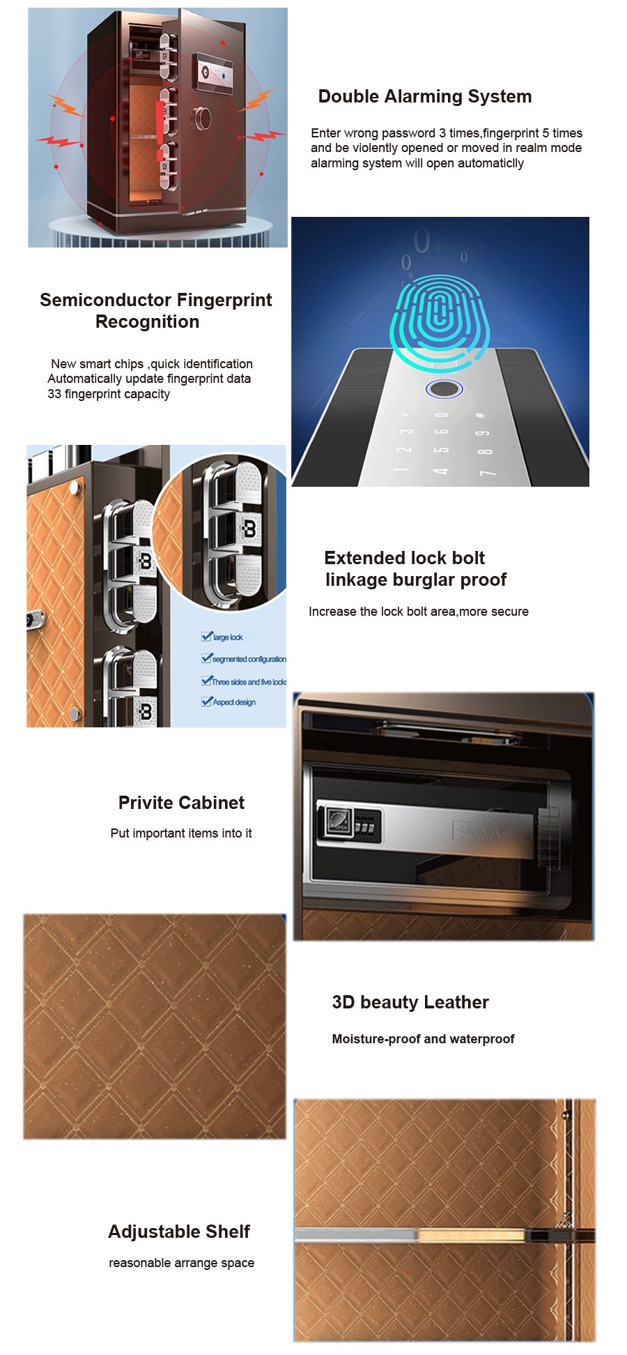 • Open method:Password/Fingerprint/Key